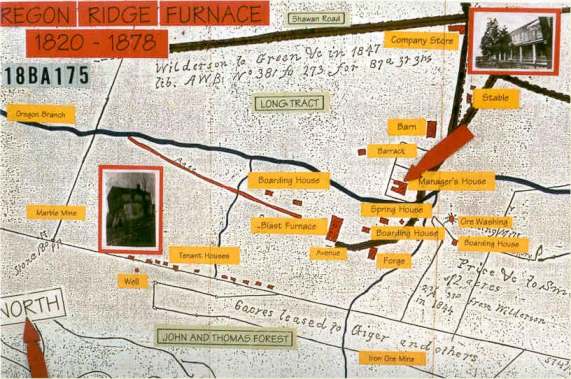 The town of Oregon was established in a region with abundant mineral resources. A high grade marble seam runs through the area and the vicinity is rich in iron ore deposits. Between 1840 and 1870, the resident workers of the company town of Oregon were involved in mining these "ores" for the production of pig iron. This product was ultimately used in the manufacturing of railroad rails, barrel hoops, and wagon wheel rims, and items such as cast iron stoves, frying pans, and trivets. By the mid-19th Century, there were approximately 50 such pig iron furnaces operating on the Eastern seaboard between New York and Washington. Their hay-day marks an important point in the "American Century" when the country was developing its industrial prowess. This stage of the iron industrys development ended with the growth of monopolistic companies such as Bethlehem steel. |